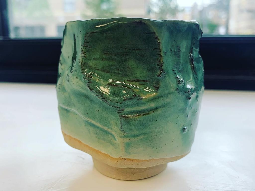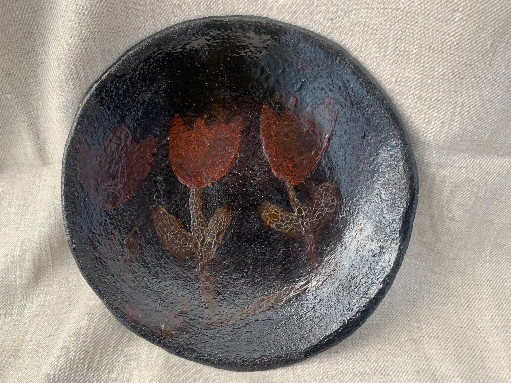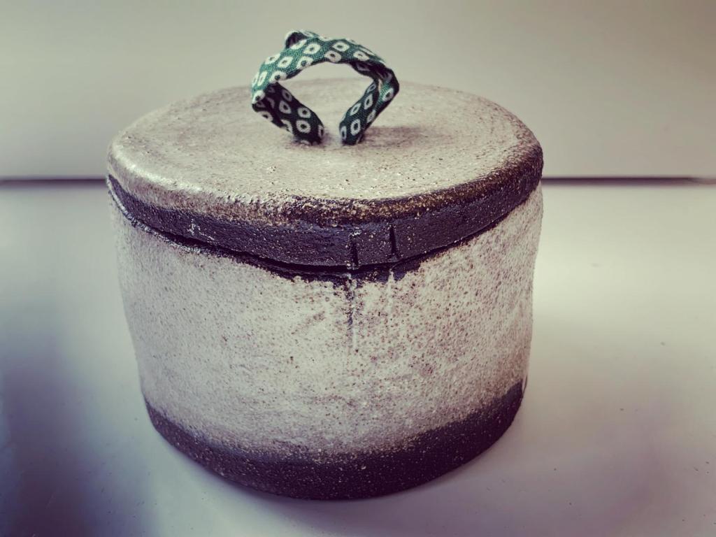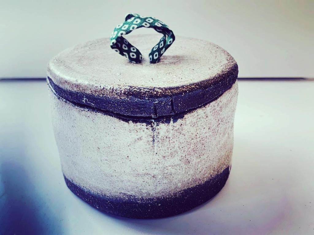 a little work of art!I stumbled across your work on ceramics on the internet. It’s really original and very pretty. I love the way you mix fabric and ceramics.